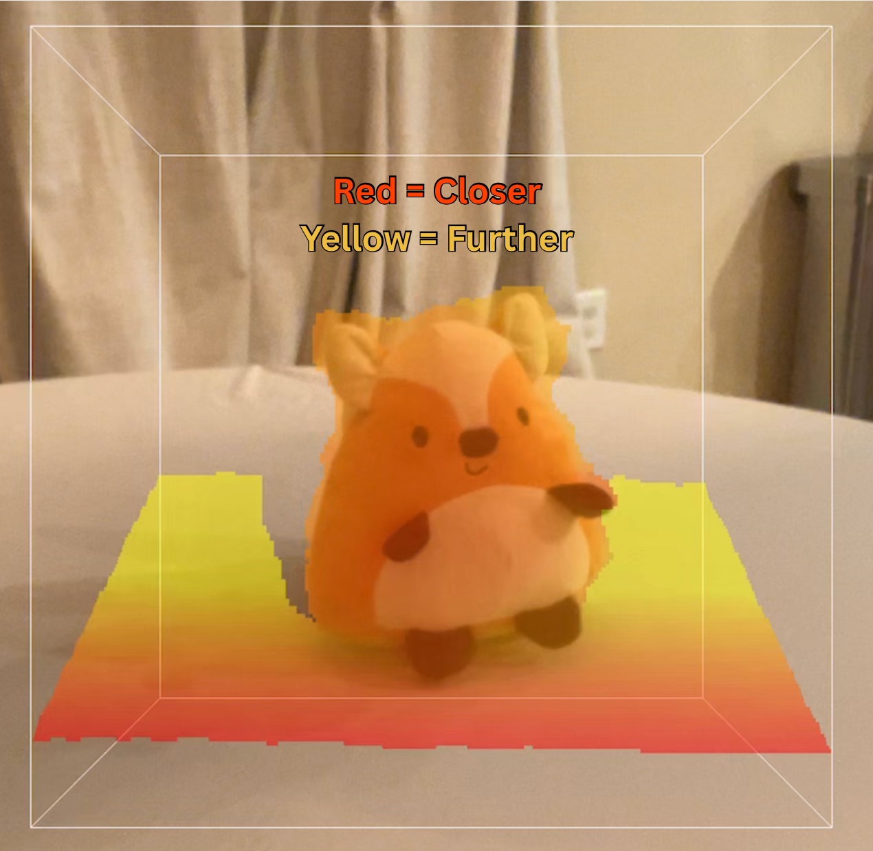 The bounding box divides the world into two parts - the part the camera focuses on, and everything else. Use ONE finger to slide the bounding box to the center of the object, toward and away from you. Then use TWO fingers to resize the bounding box to make sure it is larger than the object. |